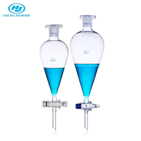 HAIJU מעבדה זכוכית ציוד מותאם אישית כדורי/אגס 60-5000ml משפך מפריד עם פלסטיק פקק זכוכית/PTFE ברזלים